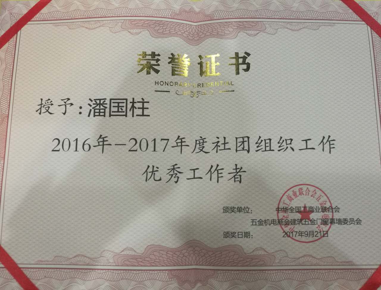 江蘇美好門業(yè)科技發(fā)展有限公司董事長(zhǎng)潘國(guó)柱先生榮獲證書(shū)