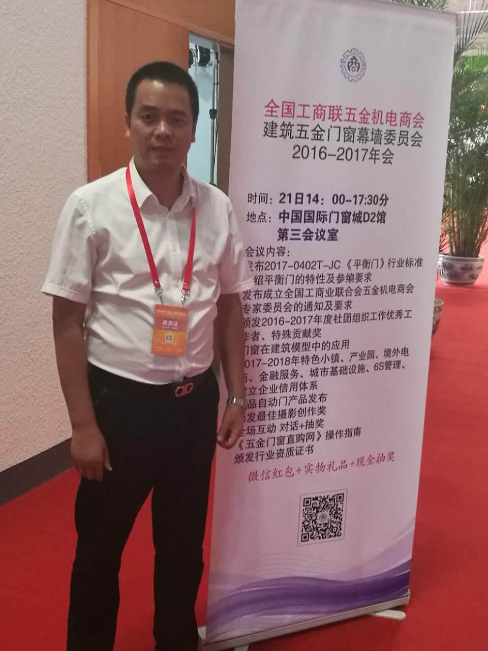 標(biāo)題:連云港市門窗協(xié)會(huì)會(huì)長(zhǎng)、江蘇美好門業(yè)科技有限公司董事長(zhǎng)潘國(guó)柱,出席“全國(guó)工商聯(lián)五金機(jī)電商會(huì)門窗幕墻委員會(huì)年會(huì)”