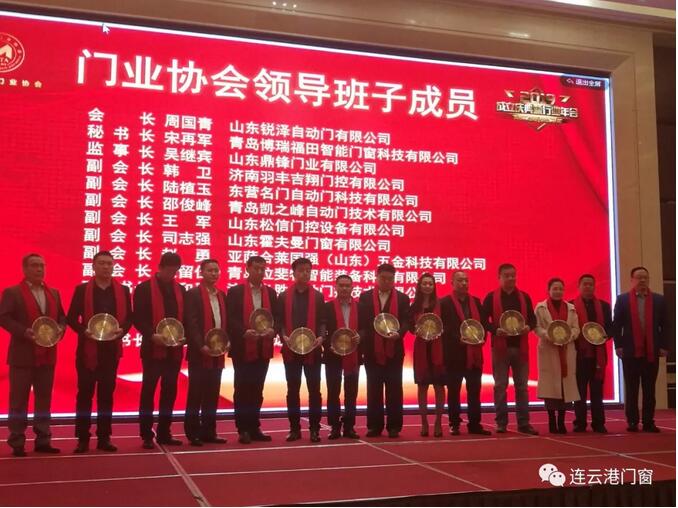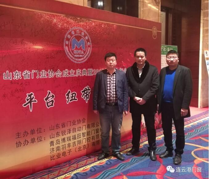 2019年3月2日,山東省門(mén)業(yè)協(xié)會(huì)在濟(jì)南隆重召開(kāi)成立大會(huì),連云港市門(mén)窗協(xié)會(huì)會(huì)長(zhǎng)(江蘇美好門(mén)業(yè)科技發(fā)展有限公司董事長(zhǎng))潘國(guó)柱、秘書(shū)長(zhǎng)(連云港瑞安置業(yè)有限公司總經(jīng)理)胡啟楷、副會(huì)長(zhǎng)(連云港華萱塑膠有限公司總經(jīng)理)孫華才應(yīng)邀出席本次盛會(huì)。