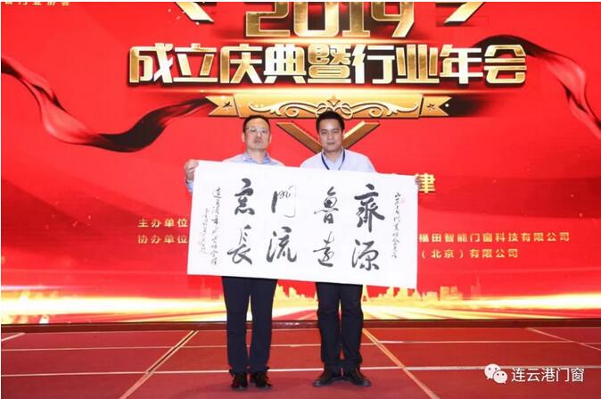 連云港市門(mén)窗協(xié)會(huì)會(huì)長(zhǎng)潘國(guó)柱向山東省門(mén)窗協(xié)會(huì)會(huì)長(zhǎng)周?chē)?guó)青贈(zèng)送了一副名家書(shū)法作品,祝賀山東省門(mén)窗協(xié)會(huì)隆重成立。