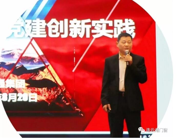連云港市門窗協會黨支部書記、會長潘國柱向與會黨員們分享學習心得和協會黨建工作情況。