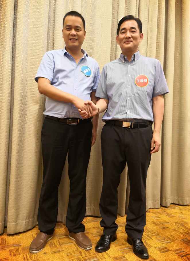 連云港市門(mén)窗協(xié)會(huì)會(huì)長(zhǎng)、黨支部書(shū)記(江蘇美好門(mén)業(yè)科技發(fā)展有限公司董事長(zhǎng))潘國(guó)柱會(huì)長(zhǎng)與北京江蘇企業(yè)商會(huì)常務(wù)副會(huì)長(zhǎng)、北京市淮安企業(yè)商會(huì)會(huì)長(zhǎng)王增明親切交談、合影留念。