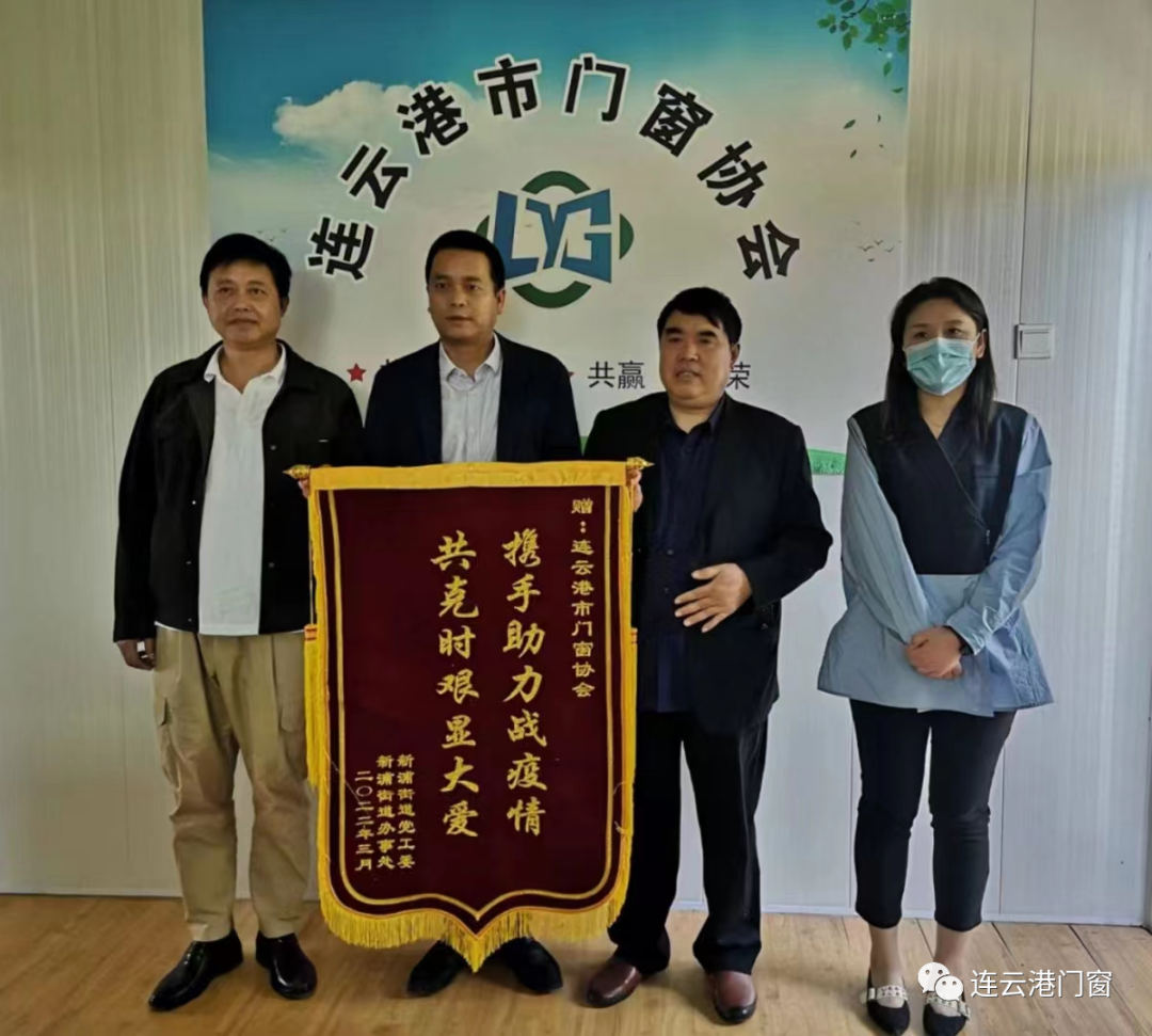 5月3日上午,海州區(qū)新浦街道的工作人員來到市門窗協(xié)會(huì)黨支部,向我會(huì)贈(zèng)送了一面題為“攜手助力戰(zhàn)疫情,共克時(shí)艱顯大愛”的錦旗。對(duì)我會(huì)在疫情期間給予新浦街道下轄的“新橋社區(qū)”和“浦河社區(qū)”捐款捐物,支持一線抗疫人員的善舉表示感謝。